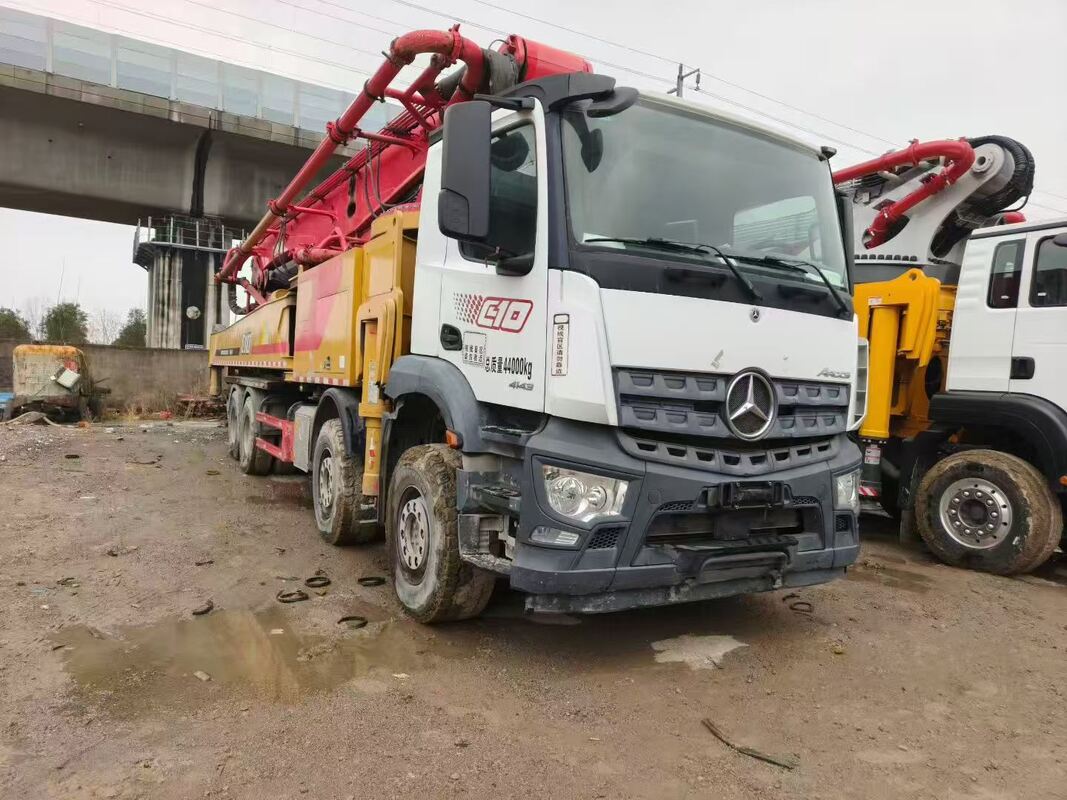 Specifications: Model SYM5442THBEB with 62m 5-section boom, mounted on a 2020 Mercedes Actros 4-axle chassis. Automatic transmission, compliant with China Stage V emission standard, with a solid 110,000+ cubic meters output history.